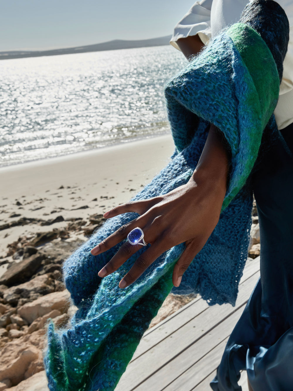 Höchster Tragekomfort und maximale Wirkung: Die weiche Fassung des CUSHION Rings, die in eine elegant zulaufende Ringschiene übergeht, stellt den Edelstein – ob im Cushion- oder im Cabochon-Schliff – in den Mittelpunkt.