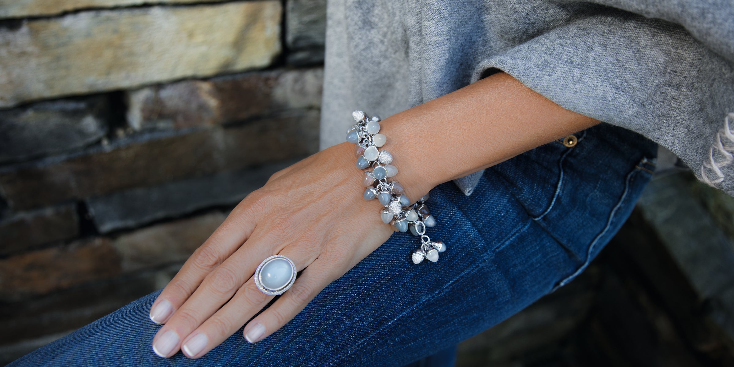Perlmuttartigen Schimmer, der an sanftes Mondlicht erinnert. Mondstein ist in Farben wie Grau, Weiß, Sand, Orange und Karamellbraun erhältlich. Seine innere Schichtenstruktur bricht das Licht und verleiht ihm ein unverwechselbares, milchiges Leuchten.