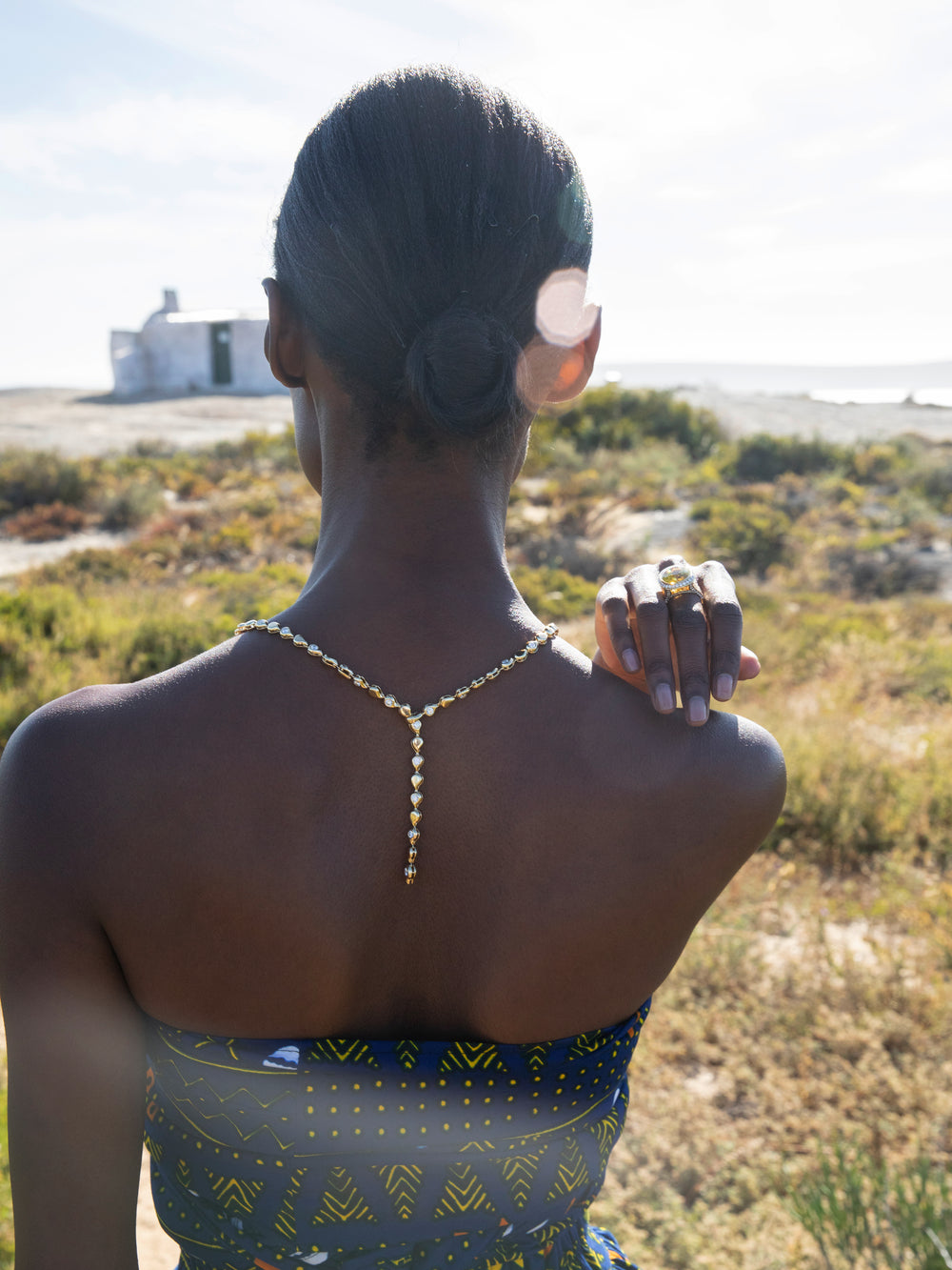 Outstanding beauty at every angle: distinct water drop designs flow one into the next, arranged on elegant necklaces, pendants, bracelets and more. Many pieces boast reversible elements, with gems set on one side, and shimmering diamonds on the other.