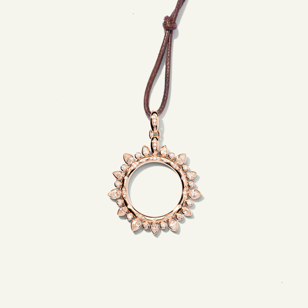 Radiant and timeless, the GYPSY Large Sun Pendant in ‘Classic’ shimmers with pure elegance. Brilliant diamonds are artfully arranged in a luminous sun pendant in 18K gold, symbolizing warmth, happiness, and positivity. Lightweight and full of life, it shines effortlessly on a casual leather cord or a delicate gold chain.