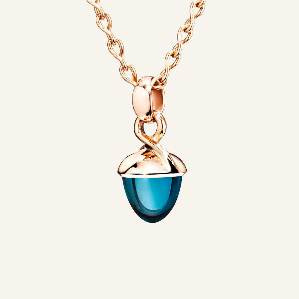 The iconic MIKADO Bouquet Pendant with London Topaz features a rich, deep blue gemstone in the signature acorn shape, set in 18K gold. Designed to be worn your way, MIKADO Bouquet Pendants can be threaded onto a delicate choker-style chain, knotted onto a leather cord with other MIKADO pendants, and effortlessly integrated across the entire TAMARA COMOLLI collection. Ideal for mix & match styling, collecting, and gifting.