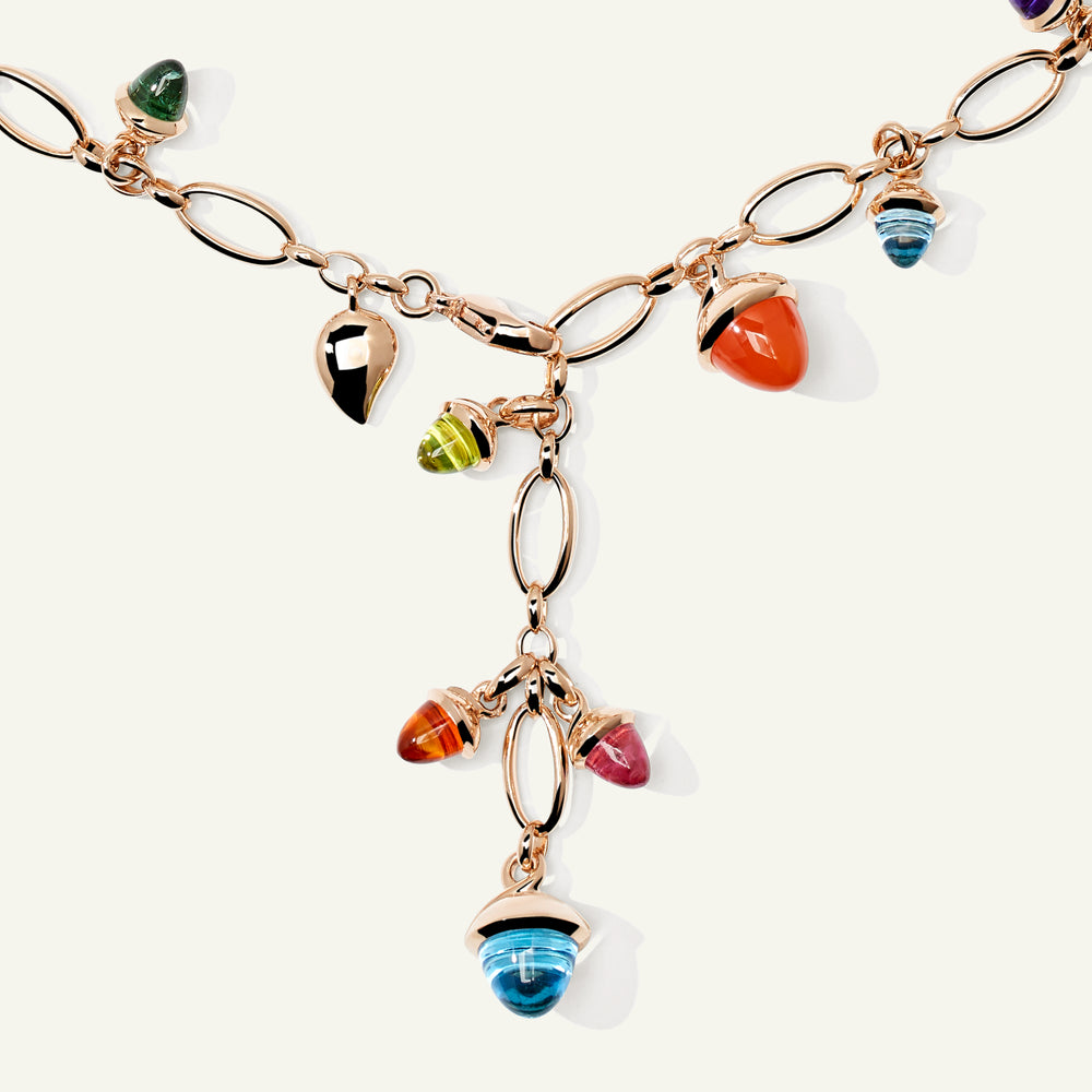 Make a statement with the MIKADO Necklace in ‘Candy,’ offering versatile styling options to suit any occasion. A cascade of vibrant, colorful gemstones shimmers on a handcrafted 18K gold chain. Accented with golden water drop details for a touch of radiance. Elegant enough for evening, effortless enough for every day.