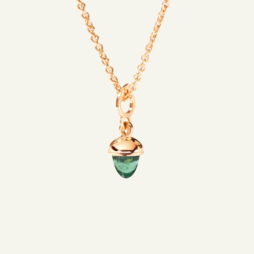 The miniMIKADO Pendant with green Tourmaline features a petite, earthy gemstone in the signature acorn shape, set in 18K gold. Designed for effortless styling, miniMIKADO pendants can be worn on a delicate chain or paired with other MIKADO pendants for a personalized look. Ideal for mix & match styling, collecting, and gifting.