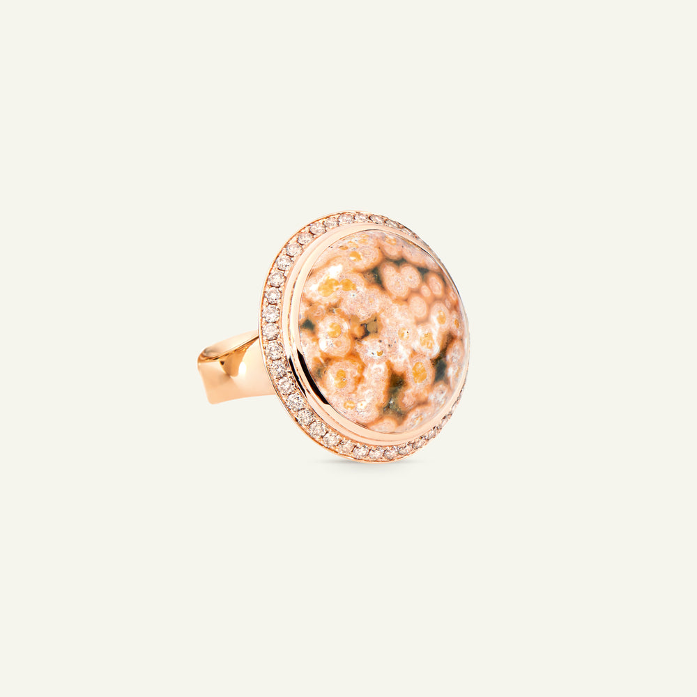 The OCEAN JASPER Small Ring in 18K gold features a striking cabochon of Ocean Jasper framed by sparkling champagne Diamond Pavé. No two Ocean Jasper gemstones are alike, making each ring a one-of-a-kind piece. This statement cocktail ring is as unique as you are.
