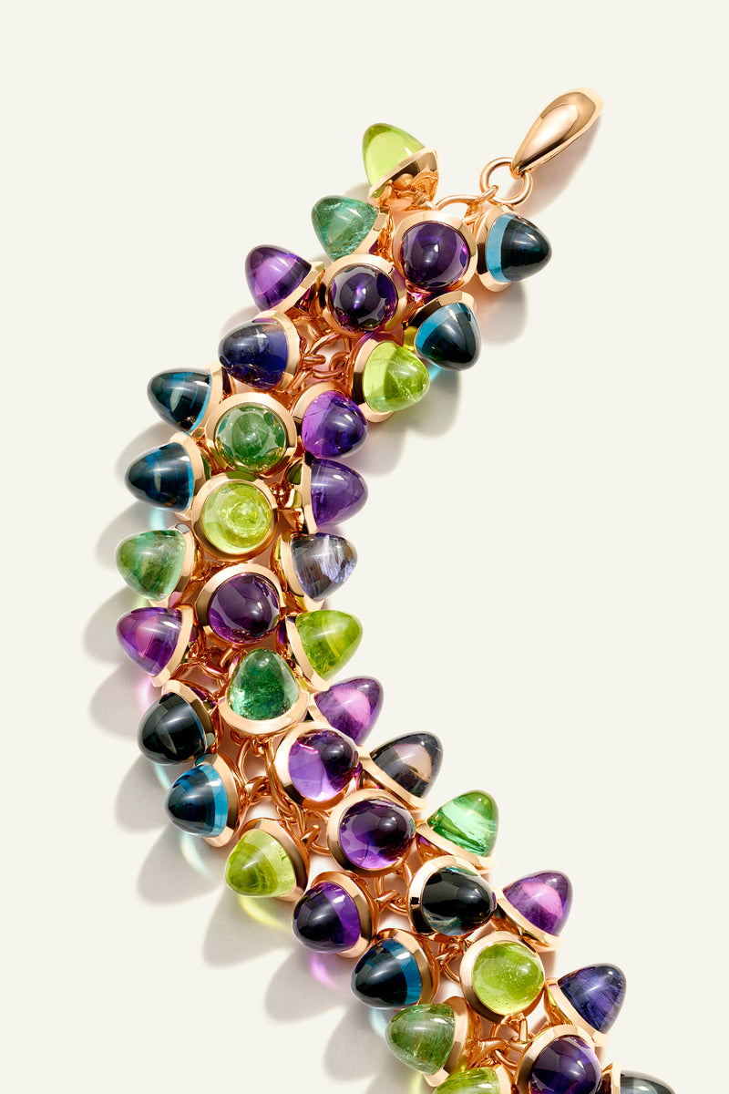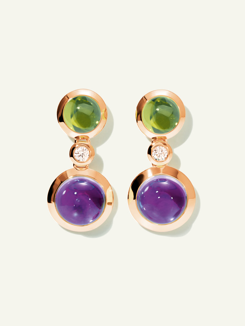 Mit handverlesenen Edelsteinen im Cabochon-Schliff: Amethyst, London Topas, Peridot, Grüner Turmalin und – frisch aus dem Edelstein-Archiv von TAMARA COMOLLI – Iolith.