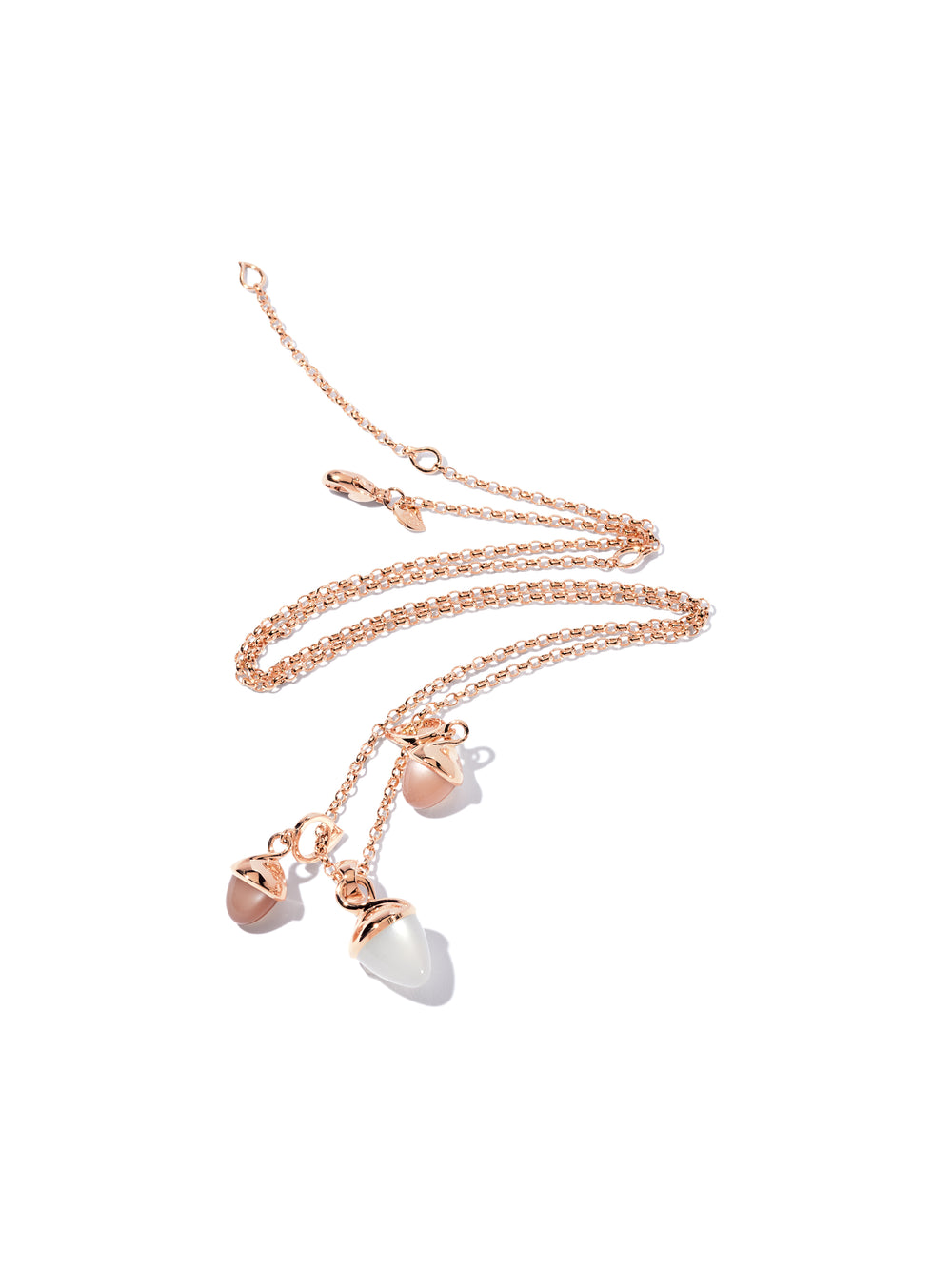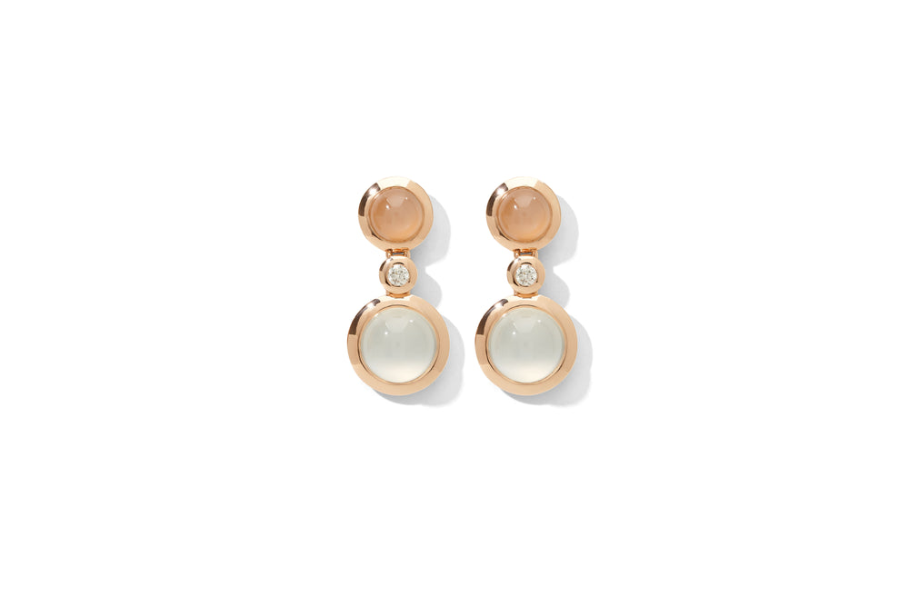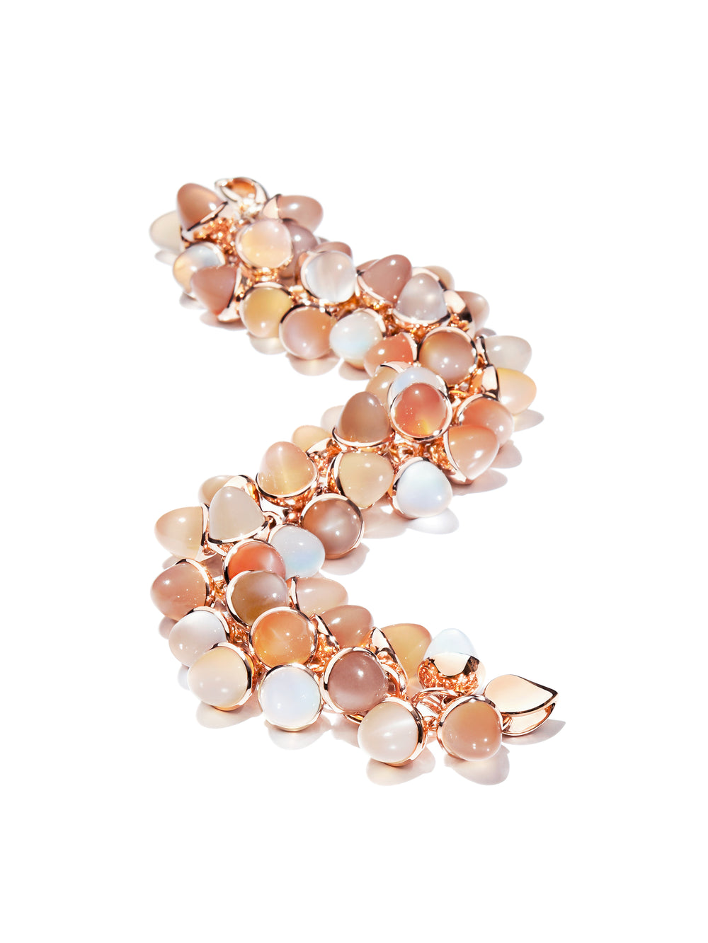 Aus dem Zusammenspiel von sanften Karamell- und goldfarbenen Mondsteinen mit 18K Roségold entsteht 'Camel'. Als Hommage an die wärmste Farbe des Herbstes schmeichelt diese harmonische Komposition jedem Teint.