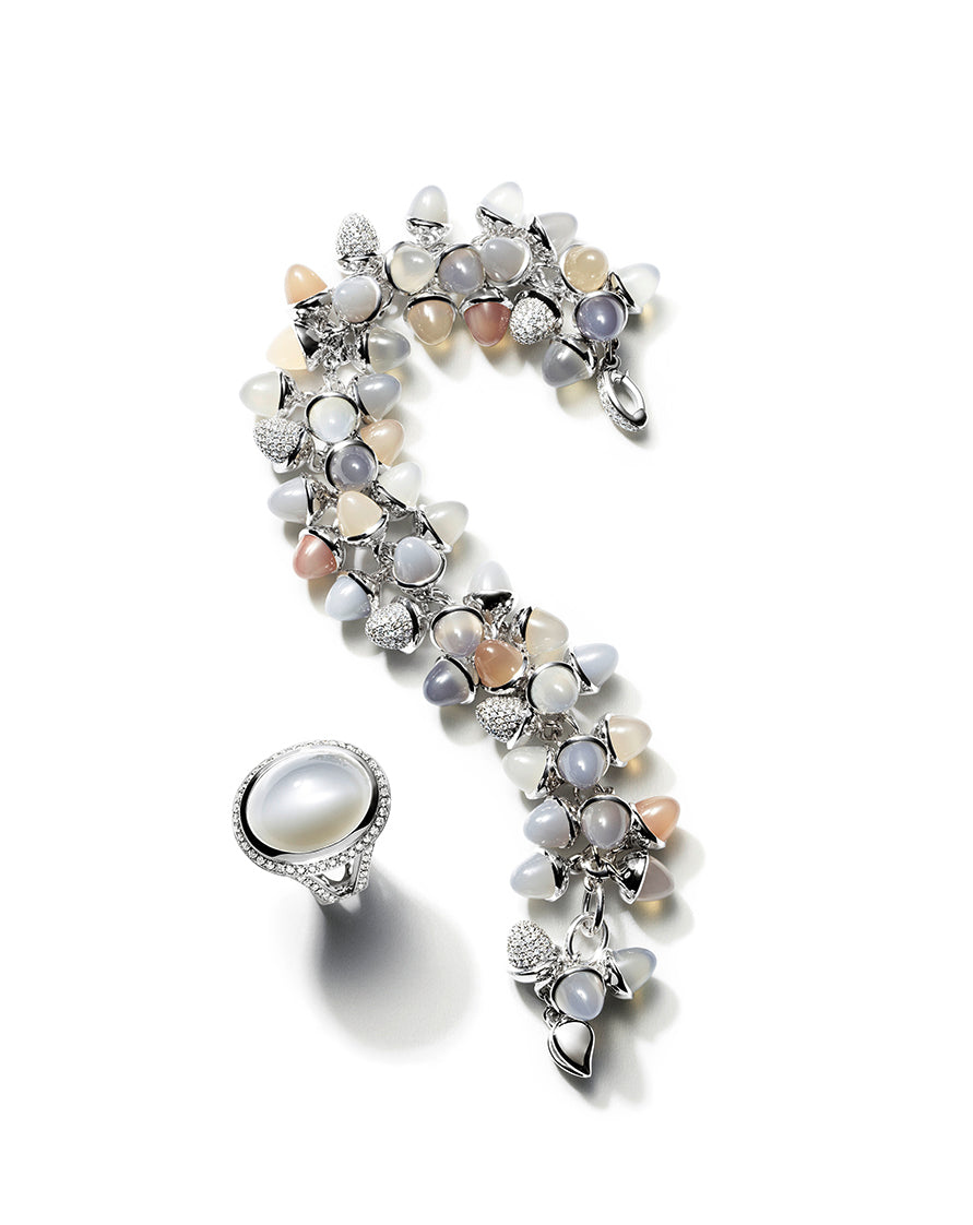 Diese Color Story erinnert an eines der luxuriösesten Materialien der Welt und ist inspiriert von seiner zeitlosen Eleganz. Sanfte Grautöne, Braun- und Sandnuancen der Mondsteine verleihen ihr eine zarte, subtile Ausstrahlung.