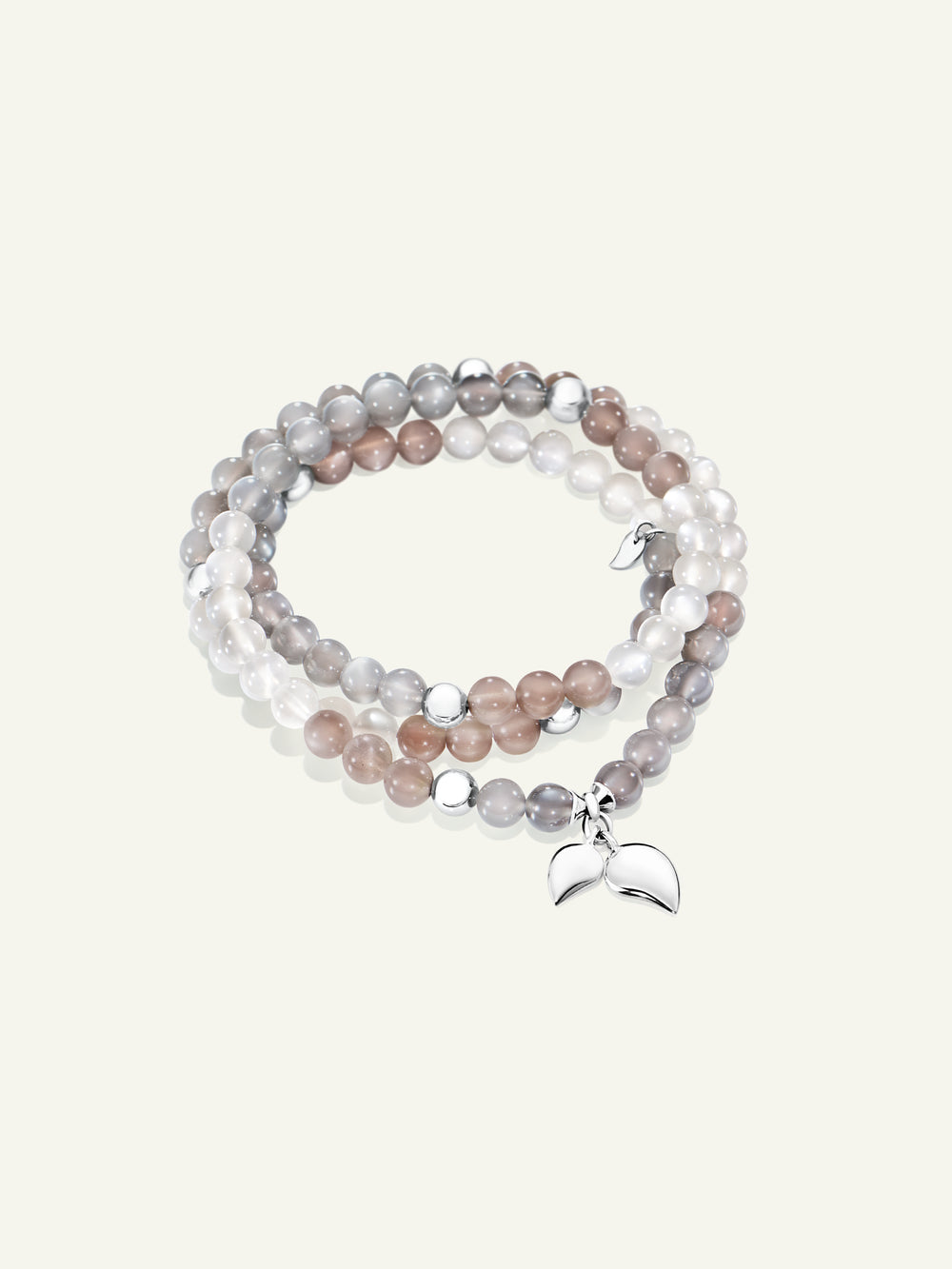 Perlmuttartigen Schimmer, der an sanftes Mondlicht erinnert. Mondstein ist in Farben wie Grau, Weiß, Sand, Orange und Karamellbraun erhältlich. Seine innere Schichtenstruktur bricht das Licht und verleiht ihm ein unverwechselbares, milchiges Leuchten.