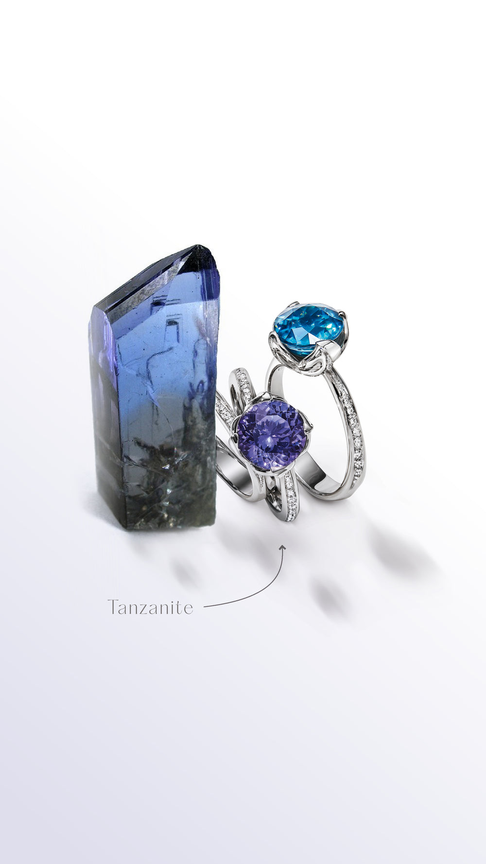 Einer der seltensten Edelsteine der Welt: Tansanit wird ausschließlich in einer einzigen Mine im Norden Tansanias gefunden. Je nach Blickwinkel zeigt er unterschiedliche Farben – ein Phänomen, das als Trichroismus bezeichnet wird. Seine Farbpalette reicht von tiefem Königsblau bis hin zu außergewöhnlichen Nuancen wie Violett, Burgunderrot sowie sogar Rosa und Gelb.