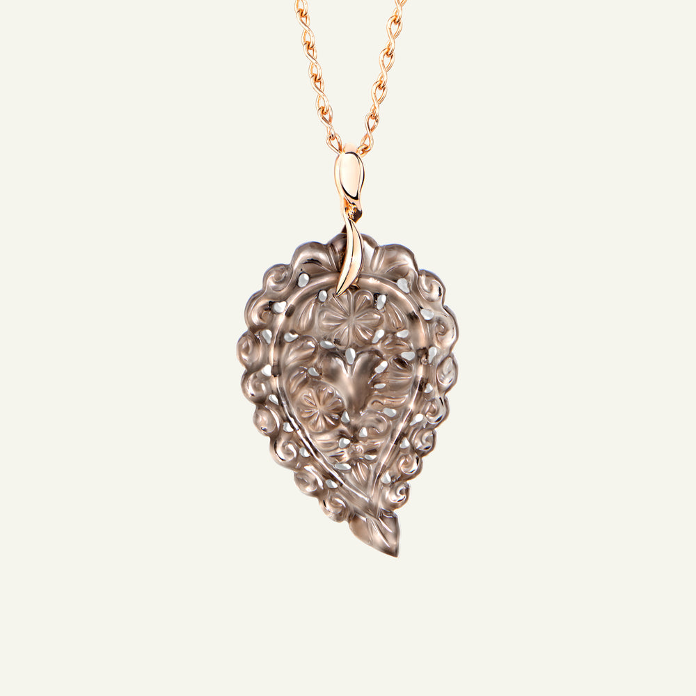 Der INDIA Medium Anhänger aus 18 Karat Gold präsentiert kunstvoll geschnitzten Rauchquarz, dessen durchscheinende Grau-Braun-Töne in einer eleganten Blattform zur Geltung kommen. Für das zarte Schwingen an einer Kette entworfen, ist er ein wunderschöner Alltagsfavorit, der jedem Look einen Hauch von Raffinesse verleiht – perfekt, um einem Layering-Style zusätzliche Dimension zu geben.