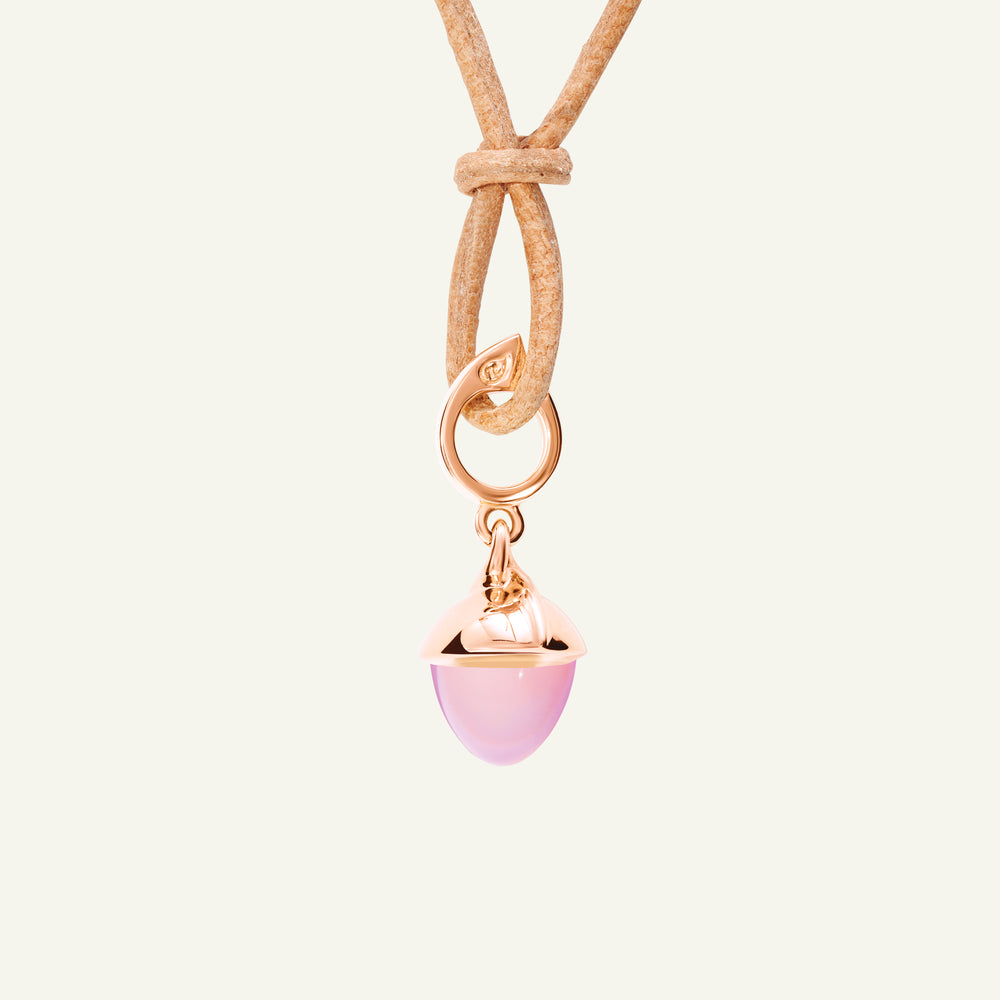Der ikonische MIKADO Flamenco Anhänger präsentiert einen zarten rosaroten Chalcedon, der an einem zarten Wassertropfen-Element in 18 Karat Gold hängt. Sein elegantes, zeitloses Design verleiht jeder Schmucksammlung eine besondere Note. Ideal zum Mix & Match, Sammeln und Verschenken.