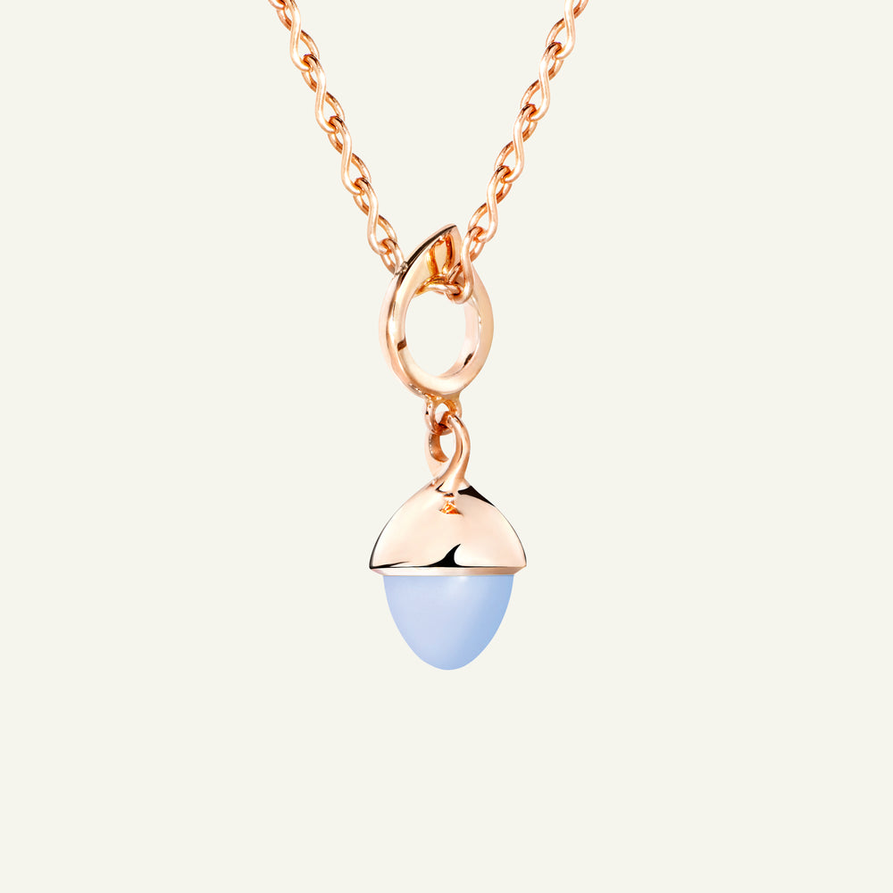 Der ikonische MIKADO Flamenco Anhänger präsentiert einen blauen Chalcedon, der an einem zarten Wassertropfen-Element in 18 Karat Gold hängt. Sein elegantes, zeitloses Design verleiht jeder Schmucksammlung eine besondere Note. Ideal zum Mix & Match, Sammeln und Verschenken.