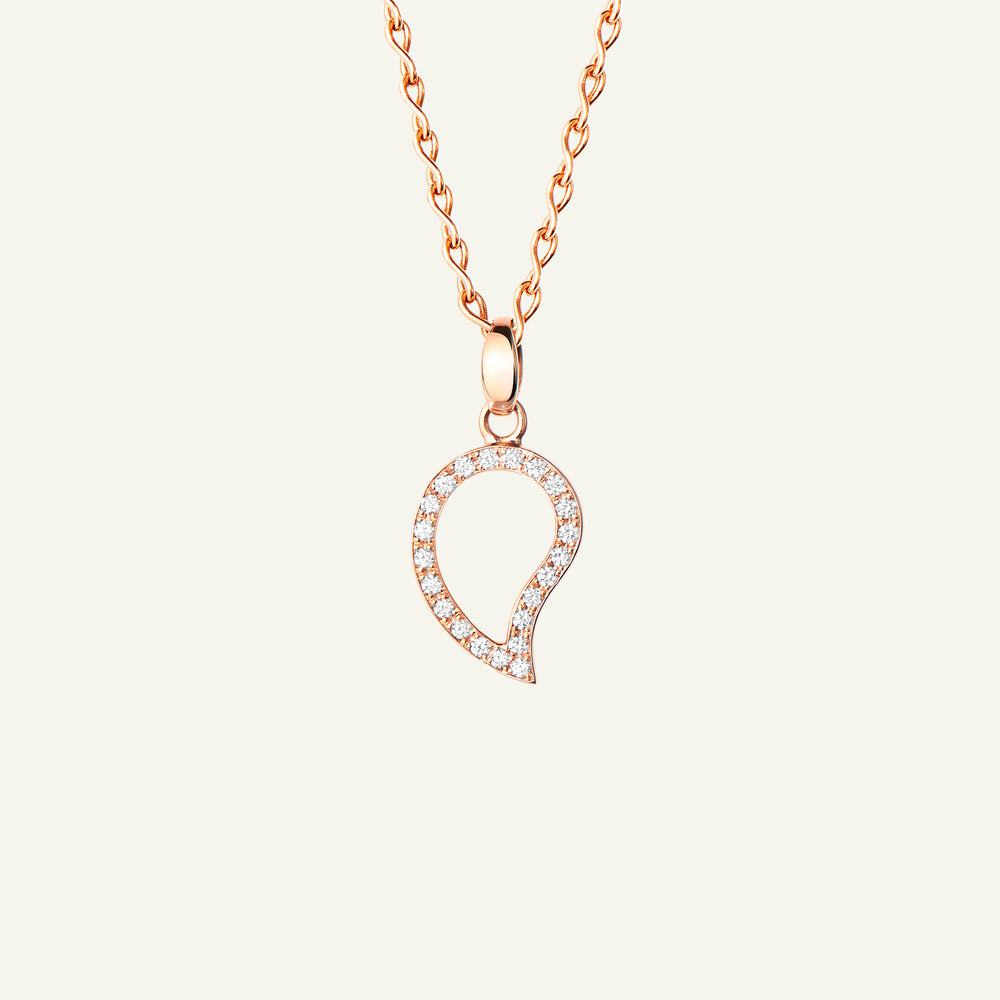 Der SIGNATURE Small Anhänger aus 18 Karat Gold zeigt die ikonische, zierliche Wassertropfen-Silhouette der Kollektion, akzentuiert mit Diamant Pavé für ein elegantes Funkeln. Ob an einer feinen Kette oder kombiniert mit einem Lederband – er verleiht jedem Look mühelose Eleganz und begleitet stilvoll vom Tag in den Abend.