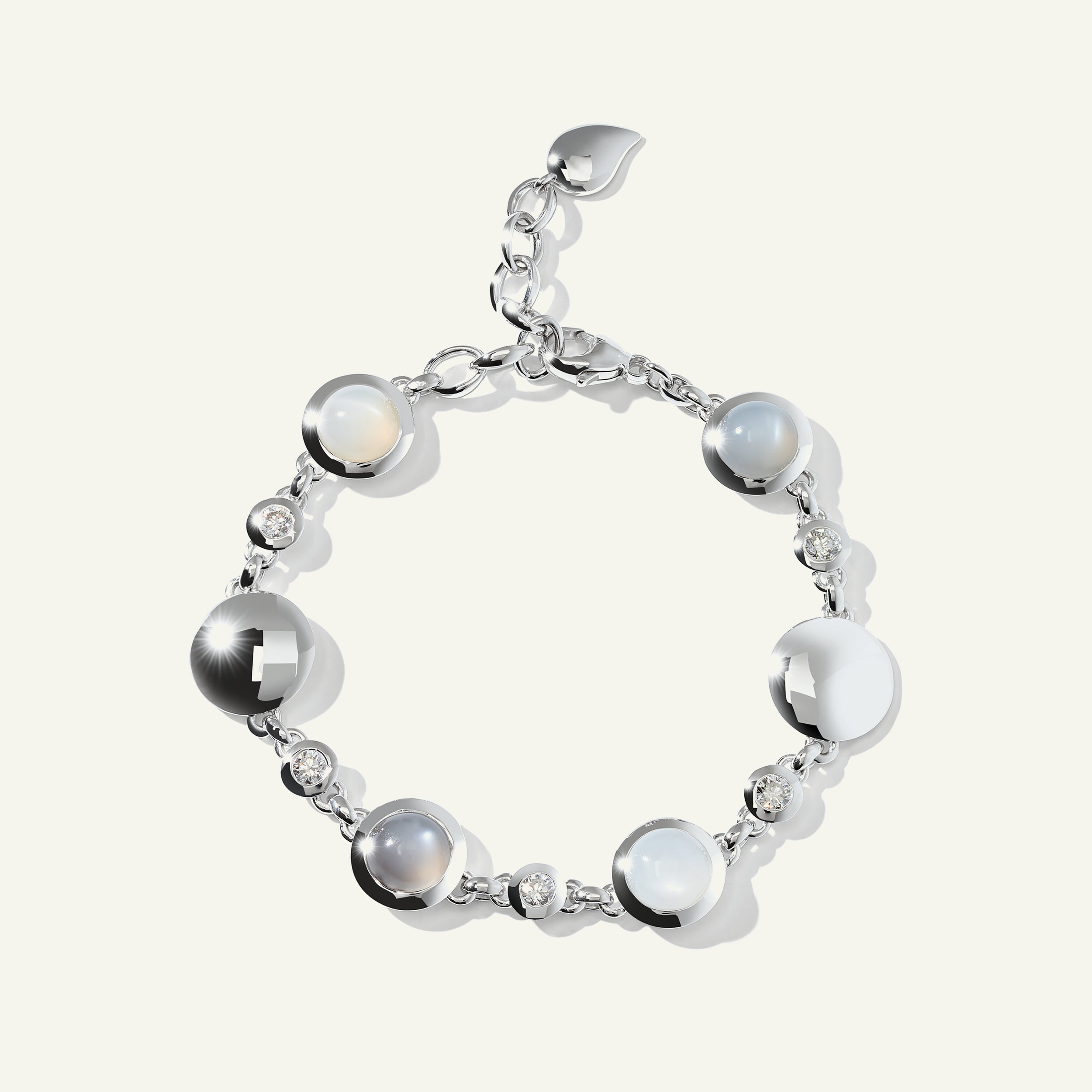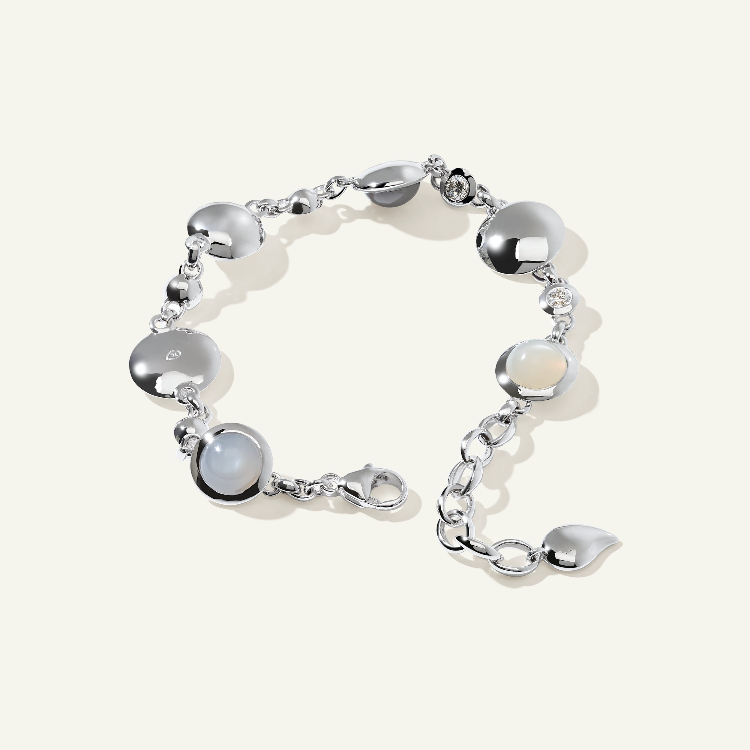 2x grauer, 1x weißer und 1x goldener Mondstein, je ca. 1.8 Karat