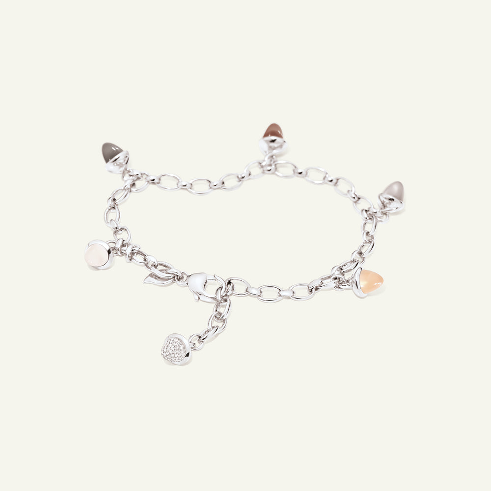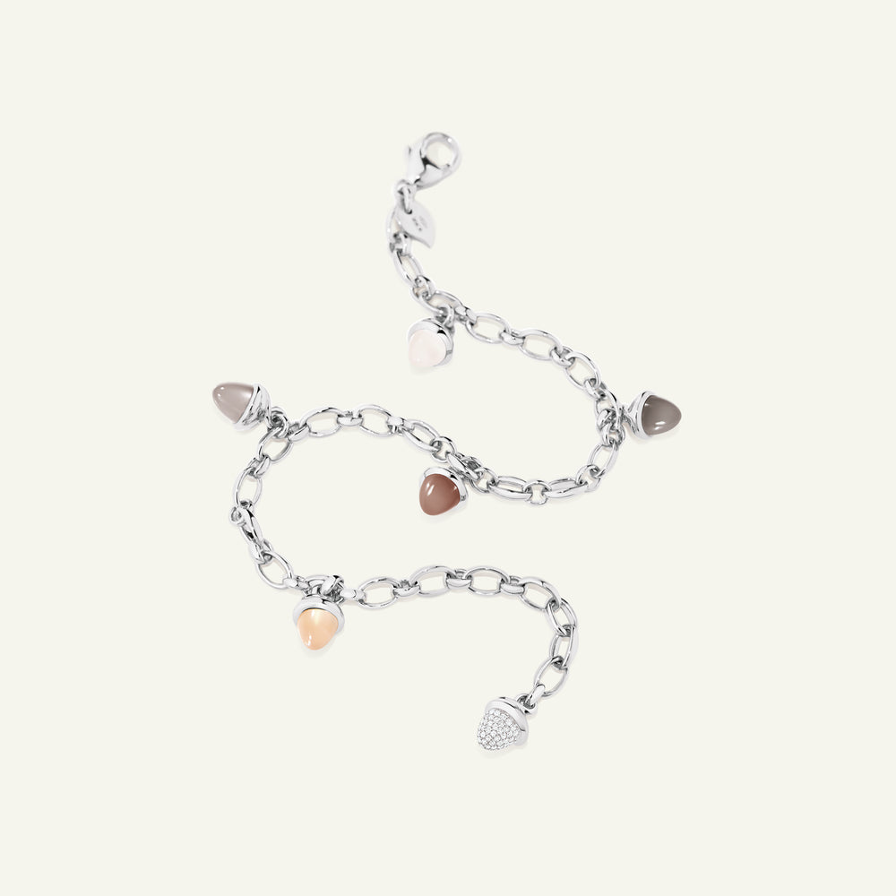 Eine edle Komposition aus Edelsteinen: Das MIKADO Charm Bracelet in 'Cashmere' vereint sechs zarte, kegelförmige Mondsteine in sanften Neutraltönen an einer handgefertigten 18K-Goldkette. Mit Diamant Pavé für zusätzlichen Glanz akzentuiert, begleitet es mühelos vom Tag bis in die Nacht.