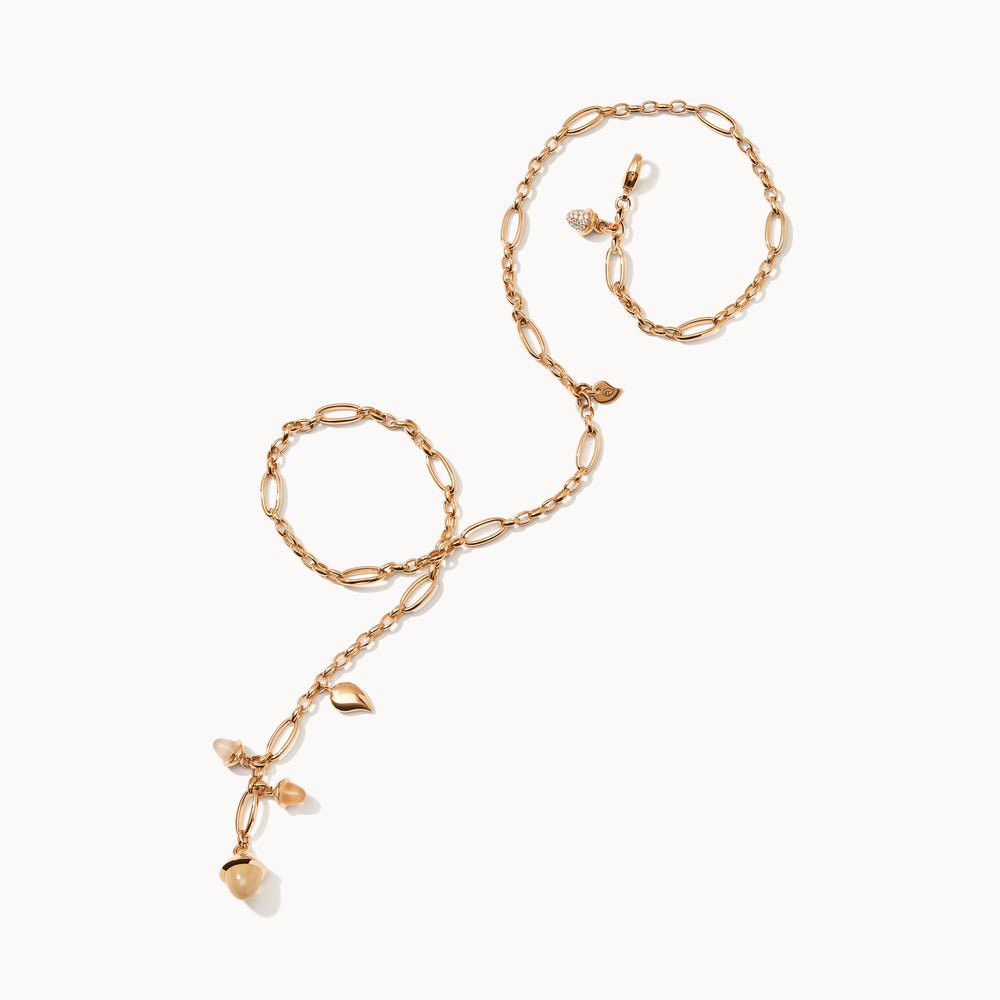 Die MIKADO Delicate Halskette in 'Blush' vereint kegelförmige Anhänger in warmen Erdtönen. Zarte Wassertropfen-Details und ein funkelnder Diamond Pavé Anhänger vollenden die handgefertigte Kette aus 18 Karat Gold. Durch ihre variable Länge ist sie ein vielseitiges Schmuckstück für jeden Anlass.