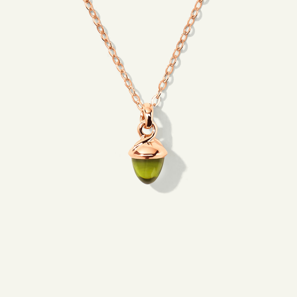 Die myMIKADO Halskette schmückt ein zarter, leuchtend grüner, kegelförmiger Peridot an einer variablen Kette aus 18 Karat Gold. Allein getragen setzt diese zeitlose, von Geburtssteinen inspirierte Halskette ein feines Statement; im Layering mit anderen Ketten unterstreicht sie einen ganz individuellen Look.