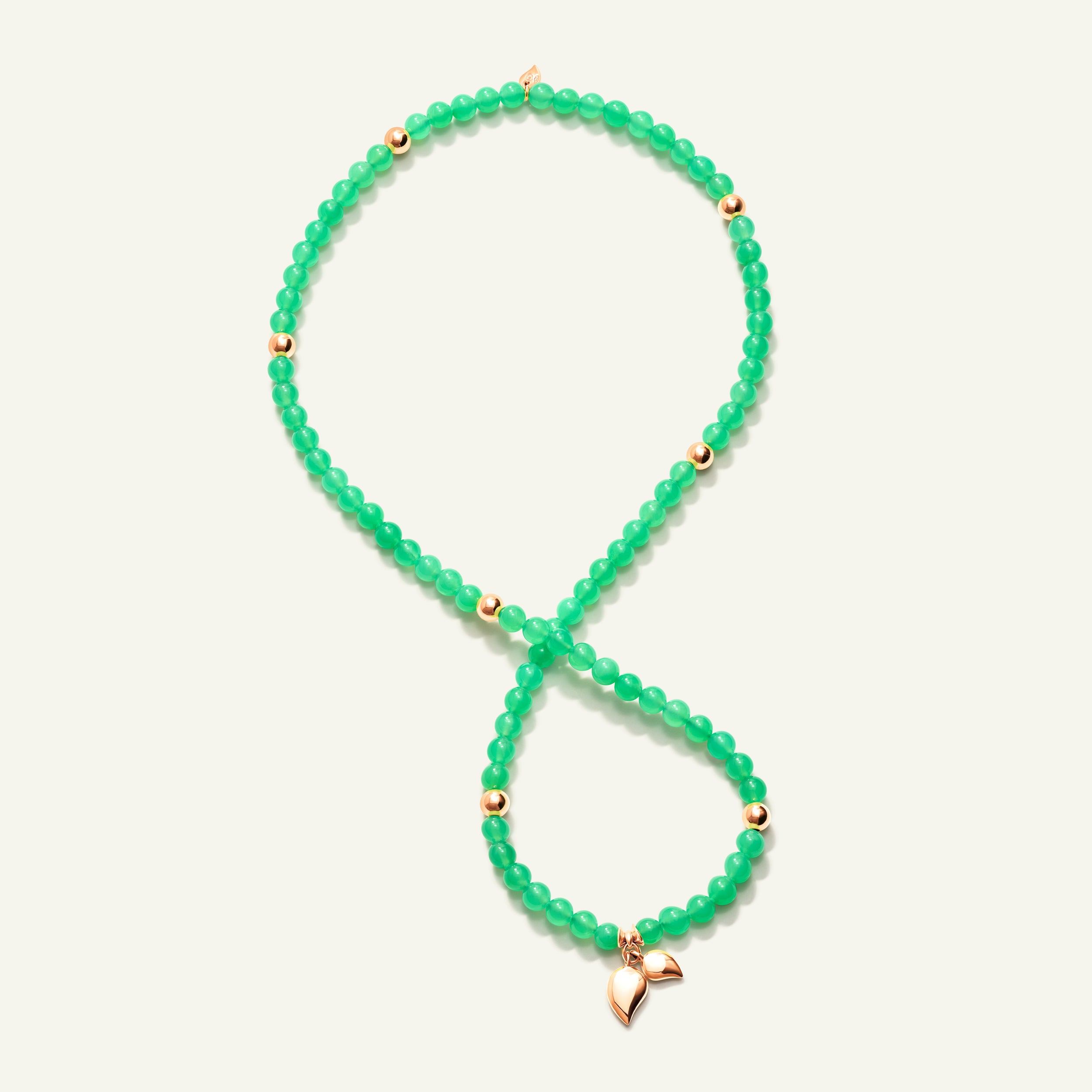 Das INDIA Medium Armband besteht aus poliertem afrikanischem Chrysopras, einem seltenen Edelstein, der für seine leuchtend grüne Farbe geschätzt wird, akzentuiert durch 18 Karat Goldperlen und die ikonischen Wassertropfen-Charms. Auf elastischem Band aufgezogen, überzeugt dieses dreifach gewickelte Design mit höchstem Tragekomfort und kann auch als Halskette getragen werden – für vielseitigen Stil und ein ausdrucksstarkes Statement.