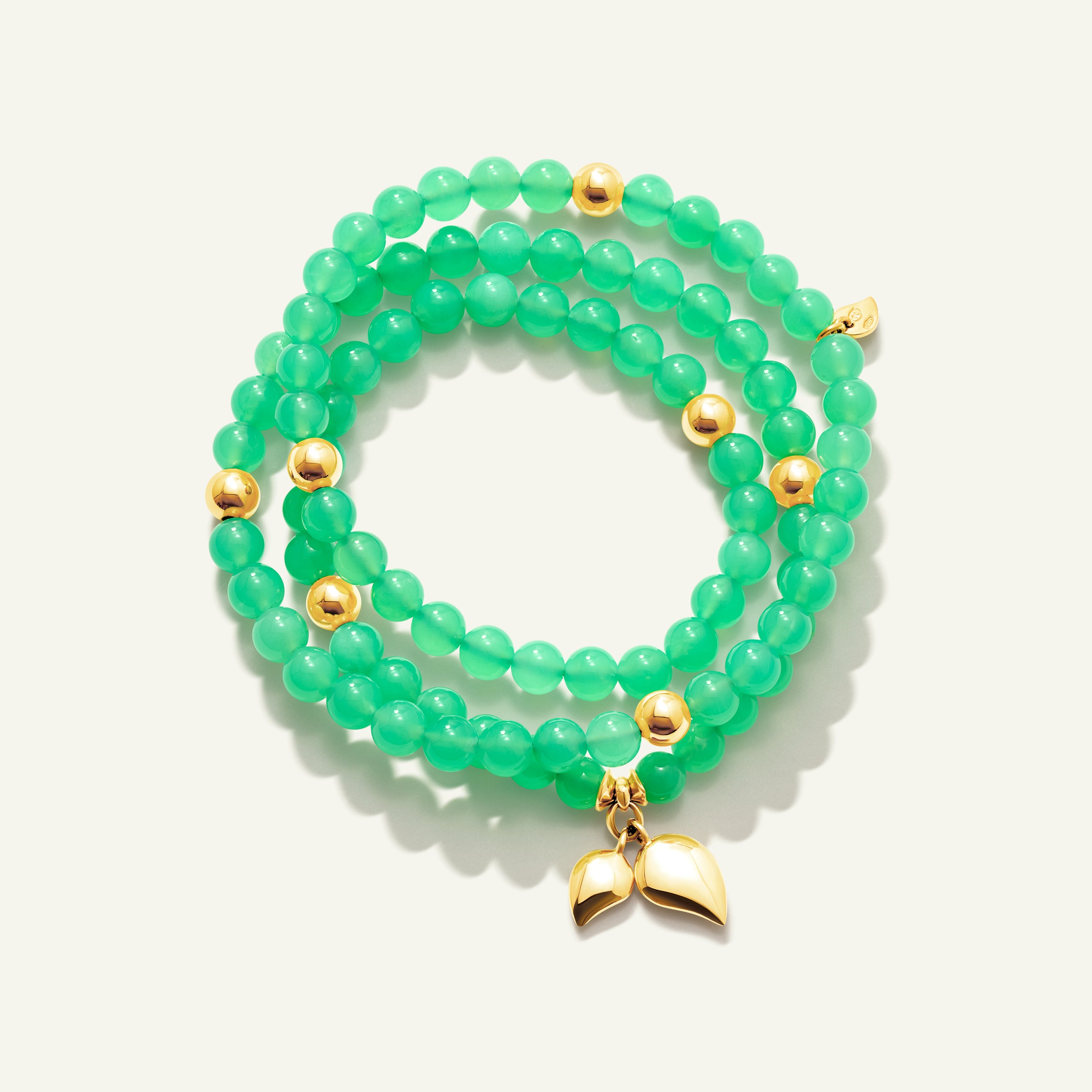 • B-IND-Chry-3-m-rg | INDIA Bracelet with 18K Gold Beads and Chrysoprase, Three Rows