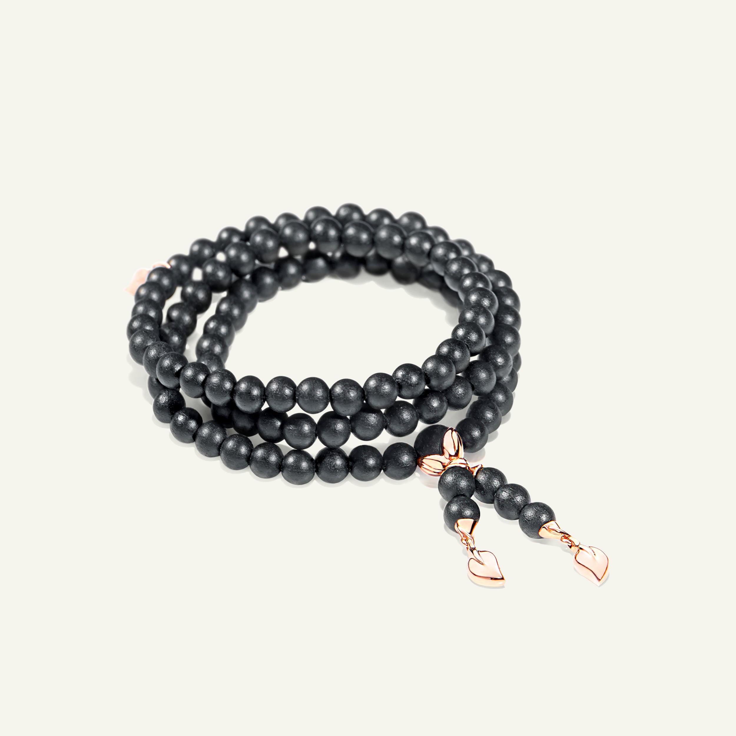 Das INDIA Medium Armband besteht aus edlen Ebenholz-Perlen, akzentuiert durch 18 Karat Goldperlen und die ikonischen Wassertropfen-Charms. Auf elastischem Band aufgezogen, überzeugt dieses dreifach gewickelte Design mit höchstem Tragekomfort und kann auch als Halskette getragen werden – für vielseitigen Stil und ein ausdrucksstarkes Statement.