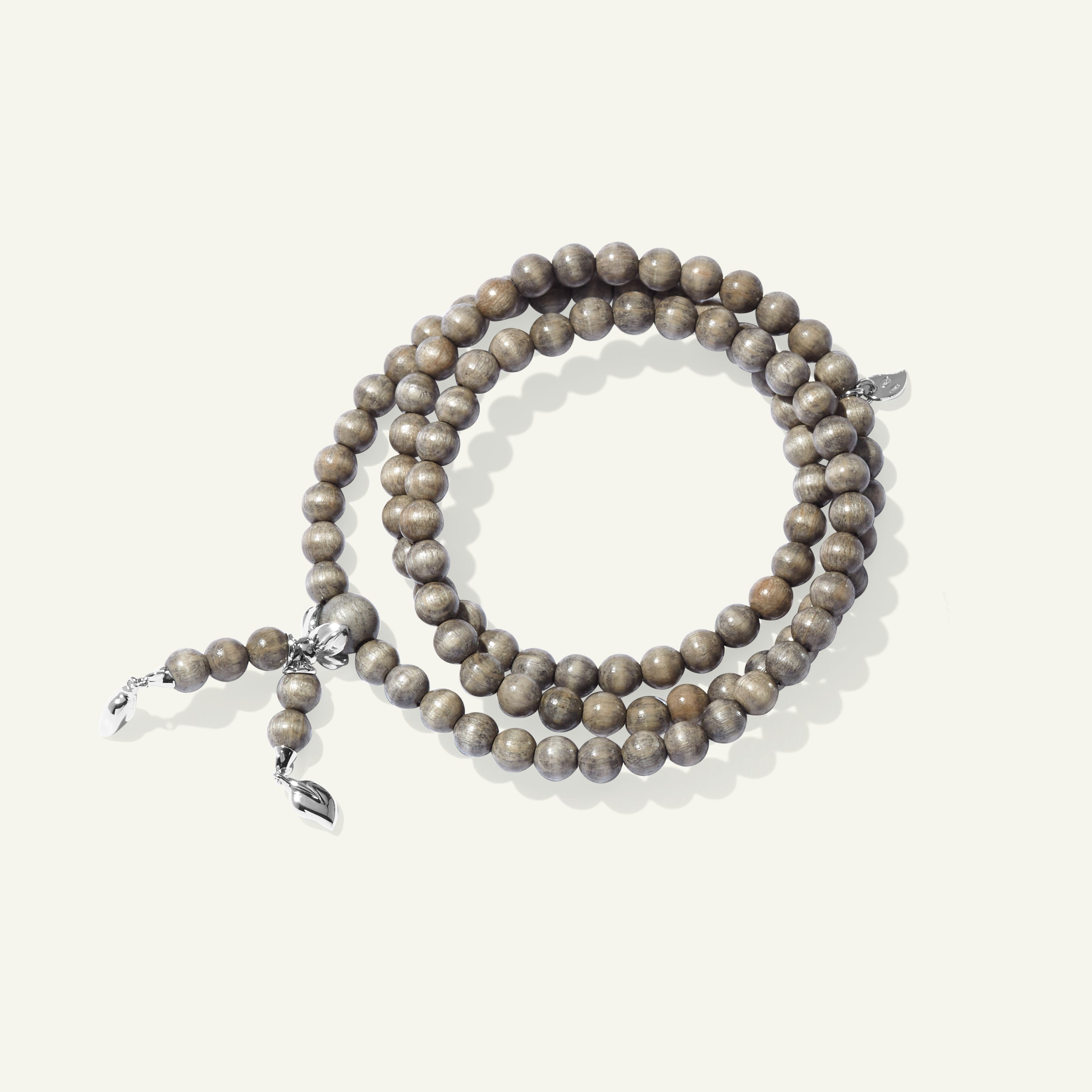 Das INDIA Large Armband besteht aus glatten Greywood Perlen, akzentuiert durch 18 Karat Goldperlen und die ikonischen Wassertropfen-Charms. Auf elastischem Band aufgezogen, überzeugt dieses dreifach gewickelte Design mit höchstem Tragekomfort und kann auch als Halskette getragen werden – für vielseitigen Stil und ein ausdrucksstarkes Statement.
