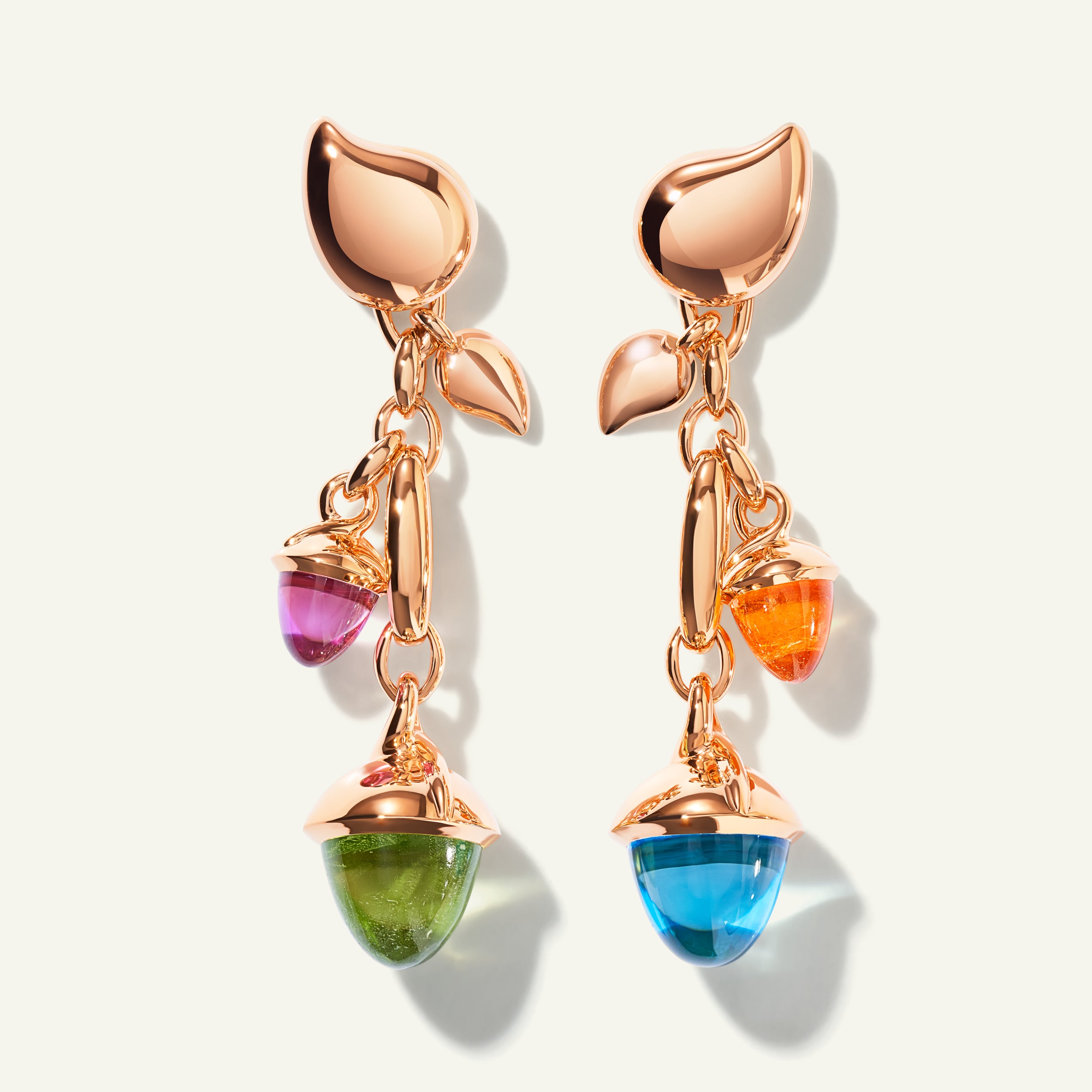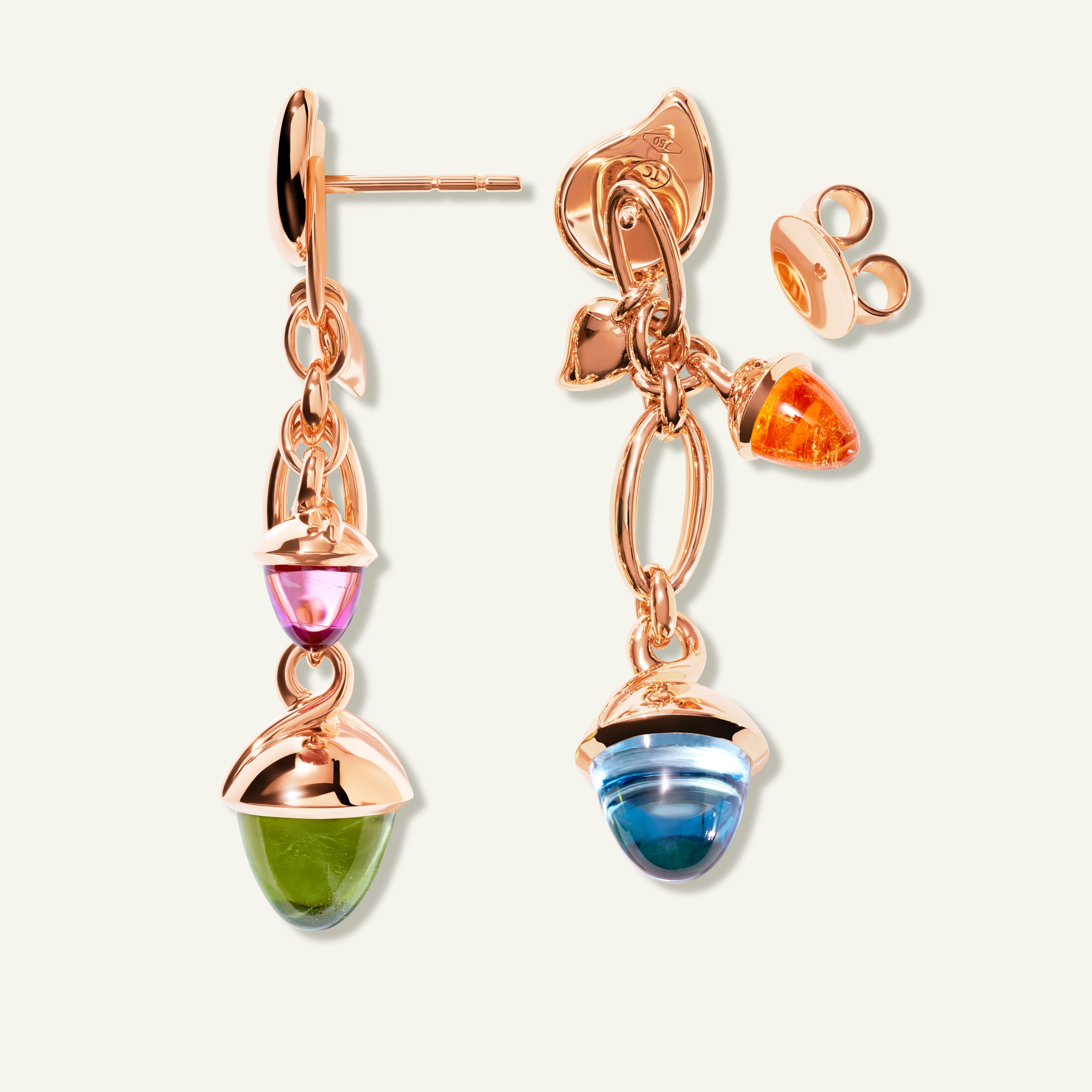 Eine Hommage an die Individualität: Die MIKADO Dangling 2 Acorn Ohrringe lassen sich wahlweise als elegante Hänger, stilvolle Stecker oder als Anhänger an einer Kette tragen. In aufwendiger Handarbeit aus 18 Karat Gold gefertigt, verleihen die charakteristischen Wassertropfen-Details dem Design eine unverwechselbare Signatur. Die farbenfrohe Color Story 'Candy' kombiniert leuchtende, bunte Edelsteine zu einem Look, der verspielt und gleichzeitig mühelos schick wirkt.