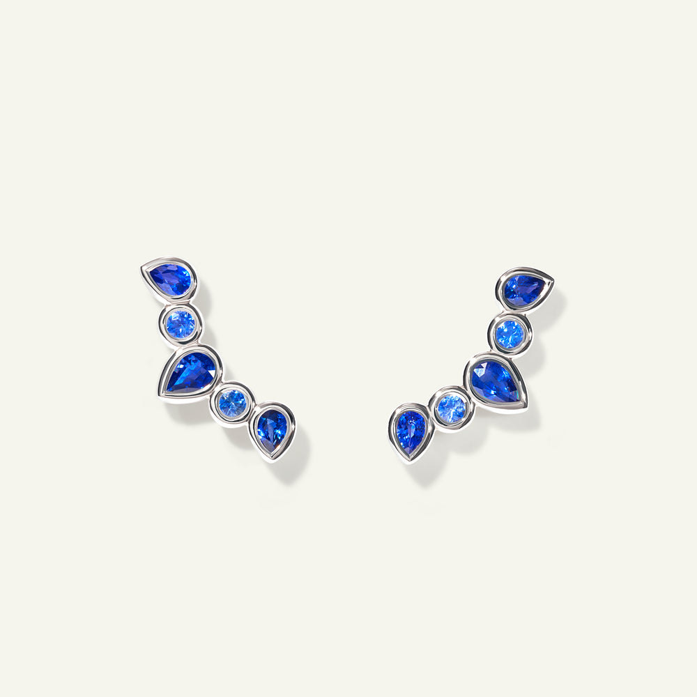 Die GYPSY Crawler Ohrringe aus 18 Karat Gold sind mit blauen Edelsteinen aus der ausdrucksstarken Color Story 'Ocean' besetzt und verleihen ein strahlendes Funkeln, das dem natürlichen Schwung des Ohrs folgt. Raffiniert und zugleich modern bringt dieses elegante Design den Geist der GYPSY Kollektion in einem subtilen Statement zum Ausdruck.