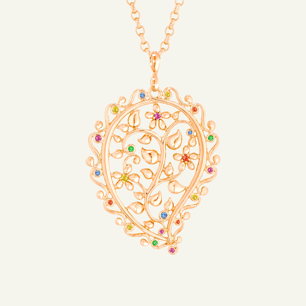 Der handgefertigte INDIA Dream Anhänger aus 18 Karat Gold fängt den lebendigen Geist der Color Story 'Candy' mit farbenfrohen Edelsteinen im Cabochon-Schliff ein. Inspiriert von indischen Wandmalereien und kunstvoll bestickten Seidenstoffen ist dieser detailreiche Anhänger ein strahlendes Centerpiece, das jedem Look Ausdruck und Eleganz verleiht.