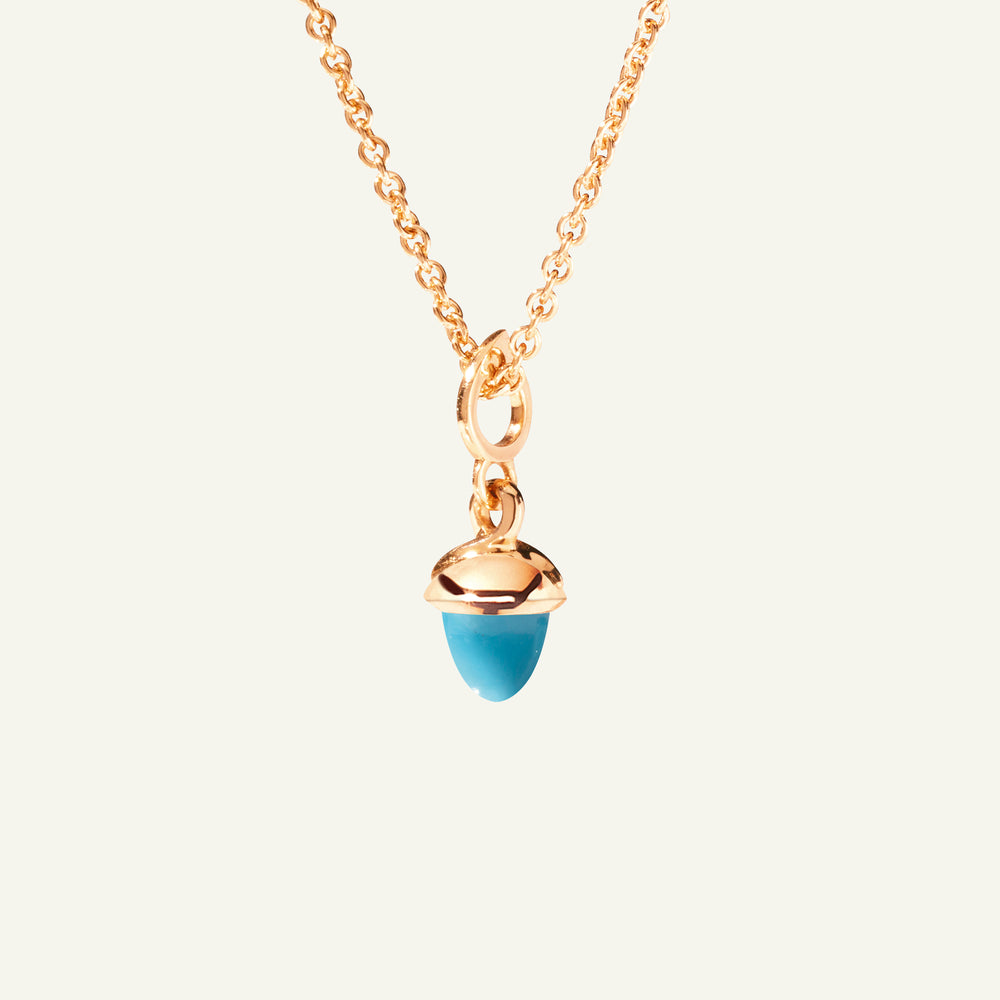 Der miniMIKADO Anhänger präsentiert einen zarten, blau-grünen Türkis in der charakteristischen kegelförmigen Form und charmant-zierlicher Größe, gefasst in 18 Karat Gold. Vielseitig tragbar, kann der miniMIKADO Anhänger an einer feinen Kette getragen oder mit weiteren MIKADO Anhängern kombiniert werden. Ideal zum Mix & Match, Sammeln und Verschenken.