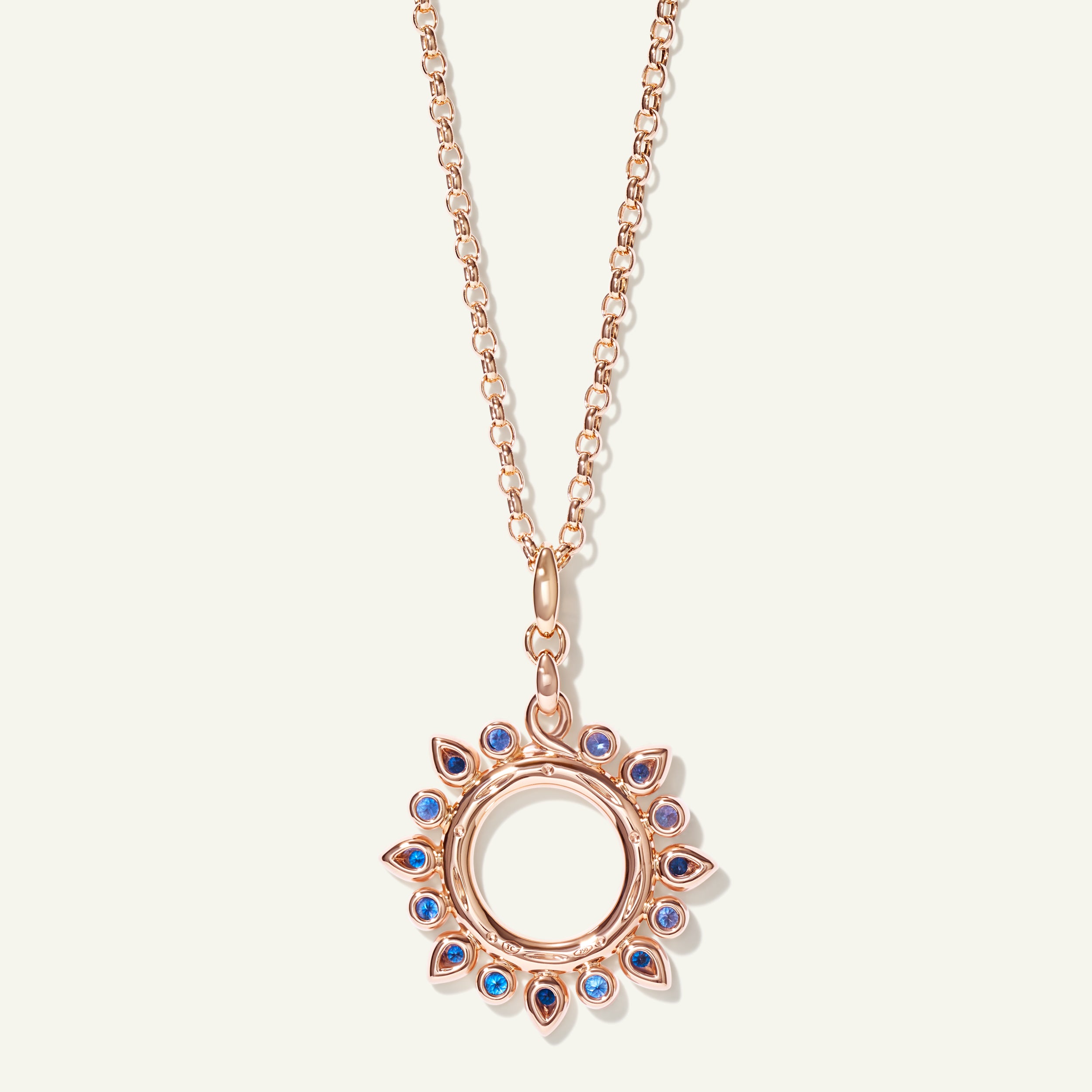 Frisch und strahlend verkörpert der SIGNATURE Small Sun Anhänger in der Color Story 'Ocean' den Geist des Meeres. Eine leuchtende Palette aus kühlen Blau- und Grüntönen, akzentuiert durch schimmernde Diamanten, ist kunstvoll in einem strahlenden Sonnenanhänger aus 18 Karat Gold arrangiert, der Ruhe, Vitalität und endlose Horizonte symbolisiert. Leicht und voller Lebensfreude erstrahlt er mühelos an einem lässigen Lederband oder einer feinen Goldkette.