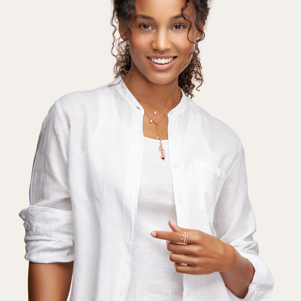 Der GYPSY Crown Ring in der Color Story 'Blush' verleiht der Kollektion eine strahlend neue Facette. Gefertigt aus 18 Karat Gold, zeigt er pinkfarbene Saphire im Brillantschliff, die entlang der kronenförmigen Ringschiene gefasst sind. Mit Edelsteinen, die auch an den Seiten positioniert sind, bietet dieses Design eine markante Silhouette und unendliche Styling-Möglichkeiten.