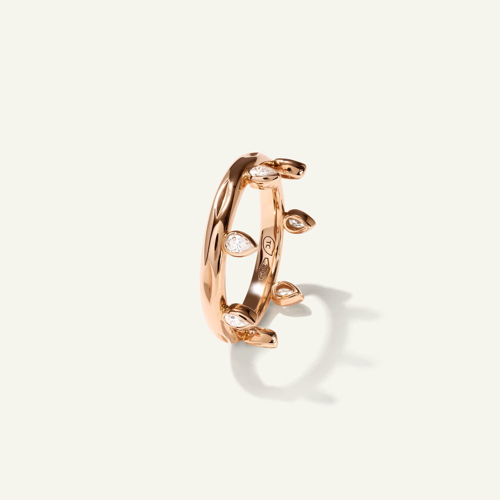 Der GYPSY Crown Ring in 'Classic' ist ein eleganter Ausdruck zeitlosen Designs. Gefertigt aus 18 Karat Gold, schimmert er mit tropfenförmigen weißen Diamanten, die entlang der kronenförmigen Ringschiene gefasst sind. Mit Edelsteinen, die auch an den Seiten eingefasst sind, bietet dieses Design eine markante Silhouette und vielfältige Styling-Möglichkeiten.