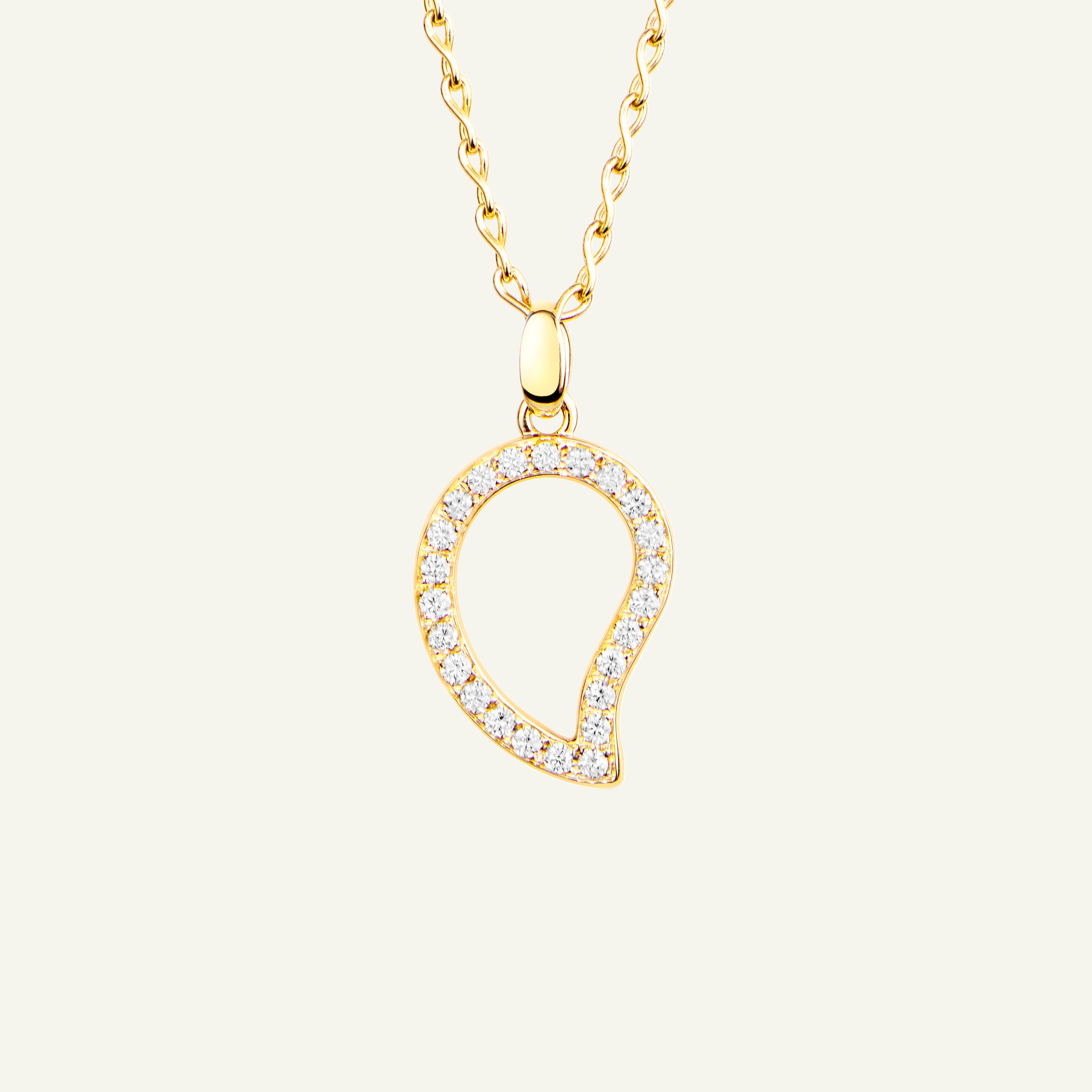 Der SIGNATURE Large Anhänger aus 18 Karat Gold zeigt die ikonische Wassertropfen-Silhouette, veredelt mit Diamant Pavé für ein elegantes Funkeln. Ob an einer feinen Kette oder in Kombination mit einem Lederband – er verleiht jedem Look mühelose Eleganz und begleitet stilvoll vom Tag in den Abend.